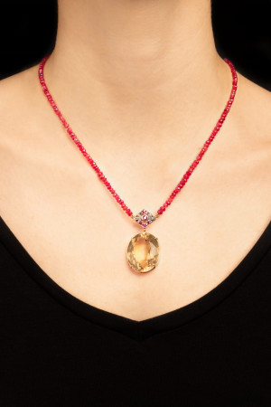 Naszyjnik z topazami i rubinam...